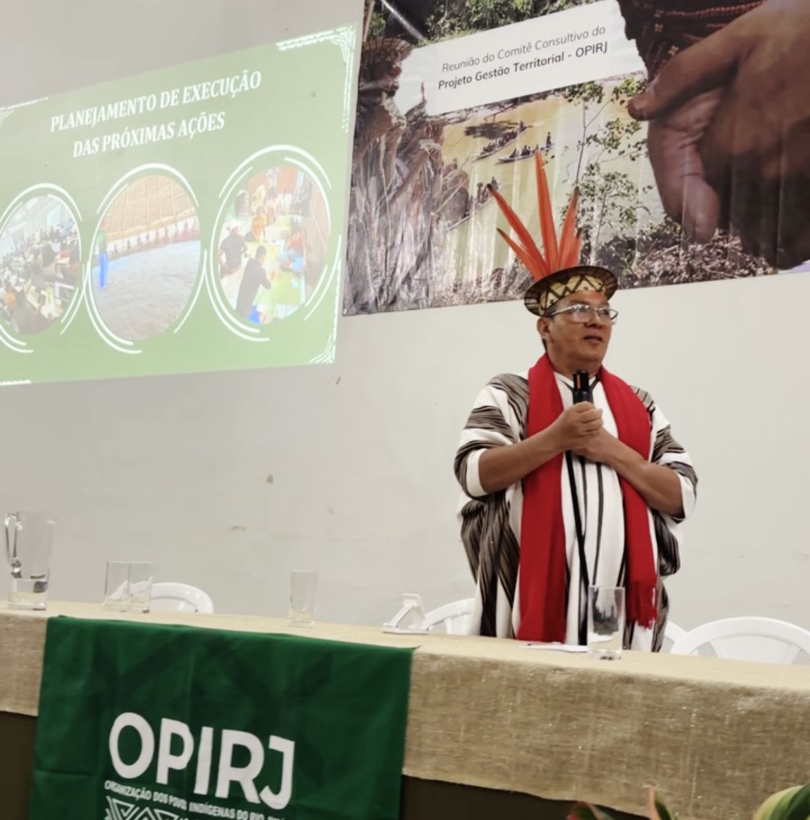 Como exercício de recapitulação, o tesoureiro da OPIRJ apresentou as ações executadas em 2024 e 2025, incluindo obras, aquisições e entregas, formações, o 1º Festival Povos da Floresta, monitoramento territorial, instalação de internet (em parceria com a Rede de Conexão Povos da Floresta) e a realização de Reuniões Estratégicas da OPIRJ.